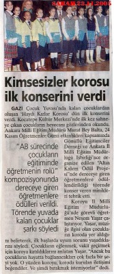 Törende SHÇEK Gazi Çocuk Yuvasında kalan kimsesiz çocuklardan oluşan ve öğretmen Neşem Yaşar yönetimindeki Gazi Çocuk Yuvası Korosu mini bir konser verdi. İlk kez sahne alan çocukların heyecanlandıkları gözlerinden okunuyordu. Dilmeyenler tarafından beğenilip ayakta alkışlandılar ve tören sonunda protokol ile bir de hatıra fotoğrafı çektirdiler. Bu konserin ardından, “Öğretmen olmak istiyorum” isimli bir şiir okuyan ilköğretim öğrencisi Zeynep Gültekin, salondaki herkese duygulu dakikalar yaşattı.